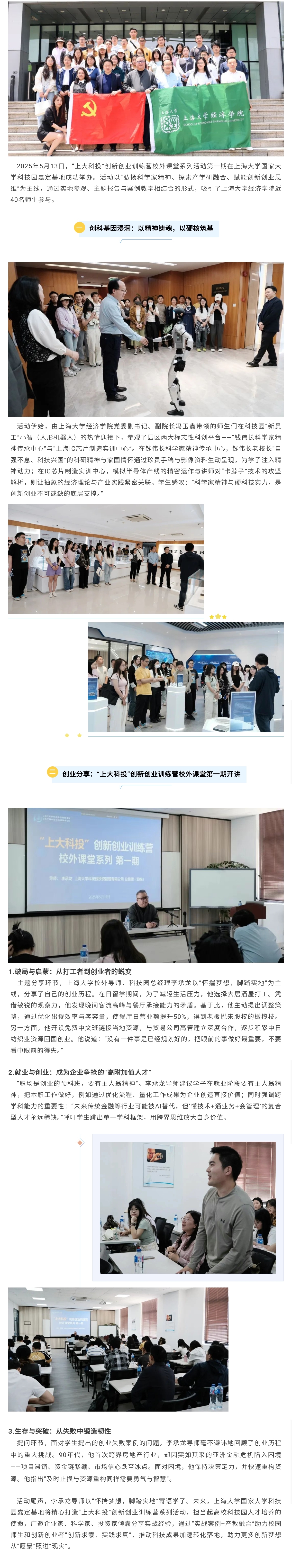 活动回顾 | “上大科投”创新创业训练营校外课堂首期开讲!