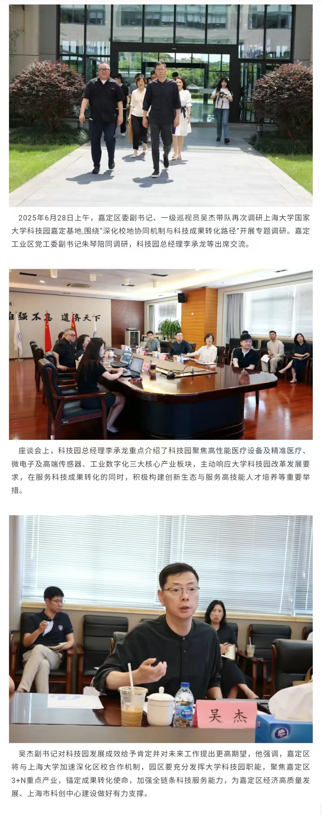 园区动态 | 嘉定区委副书记吴杰再次调研上海大学国家大学科技园嘉定基地,持续聚焦深化区校合作
