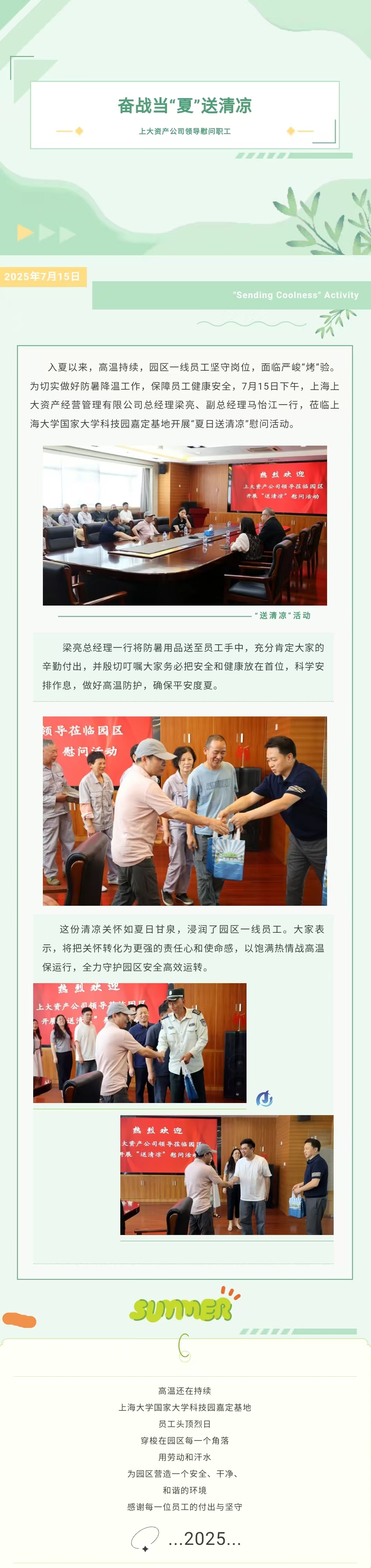 园区动态 | 奋战当“夏”送清凉——上大资产公司领导慰问园区职工