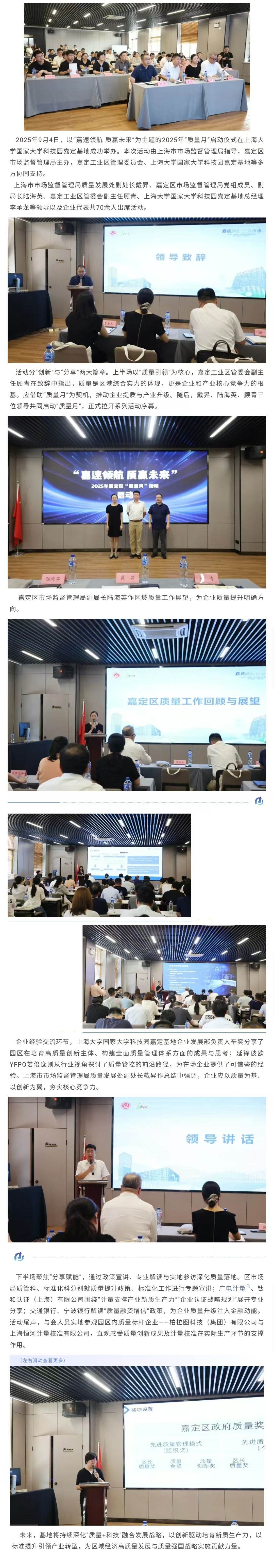 活动回顾 | “嘉速领航 质赢未来”2025年“质量月”启动仪式在上海大学国家大学科技园嘉定基地成功举办