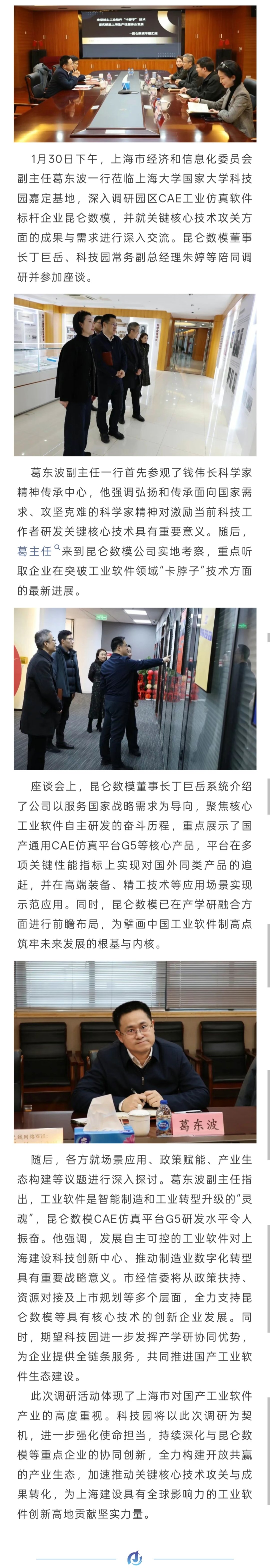 园区动态 | 上海市经信委副主任葛东波莅临科技园调研重点企业昆仑数模,共话国产工业软件发展