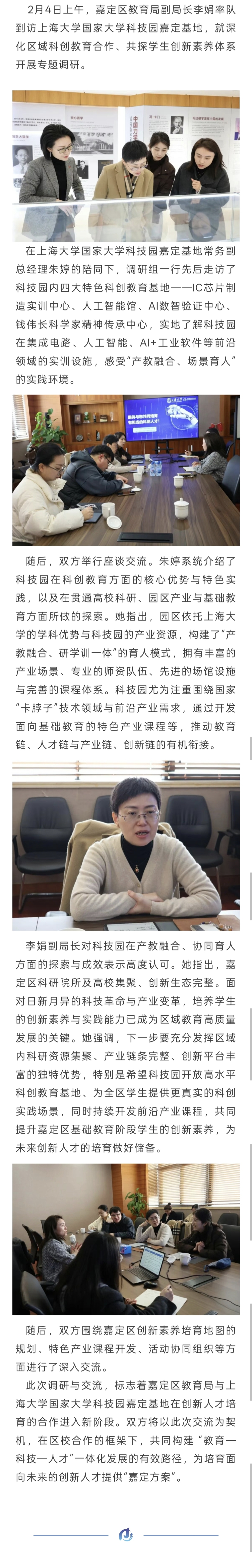 园区动态 | 嘉定区教育局副局长李娟带队调研科技园
