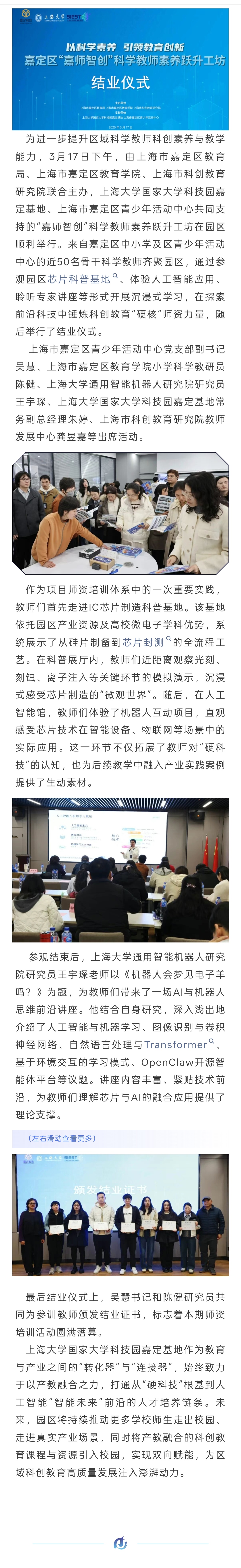 活动回顾 | 嘉定区“嘉师智创”科学教师素养跃升工坊在上海大学嘉定科技园圆满举行