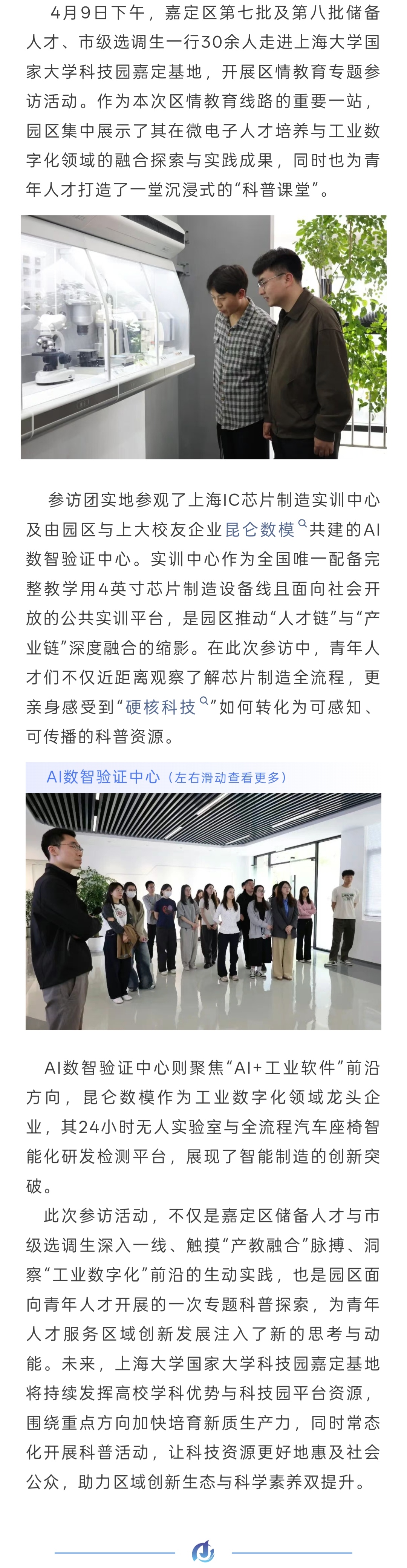 科普活动 | 嘉定区储备人才、市级选调生参访上大科技园嘉定基地